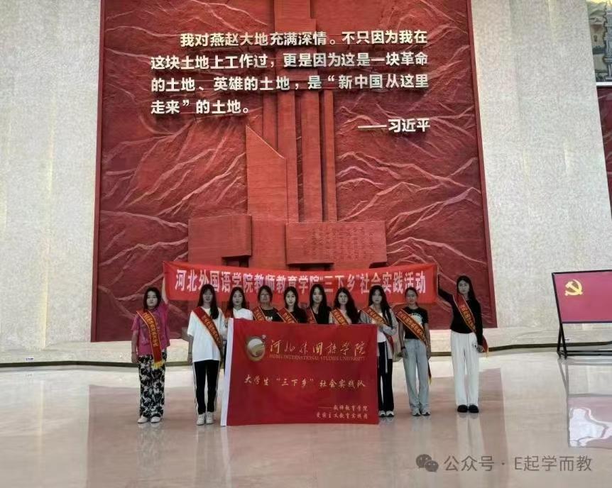 2024年7月5日,由河北外国语学院教师教育学院学生自发组织的“勠力同心红色精神传承团”实践队赴河北省石家庄市石家庄解放纪念馆开展暑期“三下乡”社会实践。通过红色基地的学习,学生更加深刻地认识到革命先烈的英勇事迹和无私奉献精神,增强了自己的爱国情怀和民族自豪感。