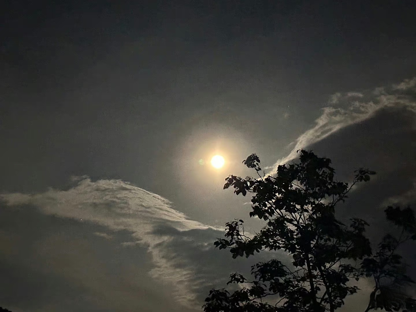 @年冬悲伤小猫^:中秋佳节,一轮明月高悬天际,清辉洒落。云朵似轻纱萦绕,树影在月光下勾勒出朦胧轮廓。这一天,人们寄情于月,或阖家团圆共赏婵娟,或遥寄思念于千里之外。中秋的月,是团圆的符号,是乡愁的寄托,在这清寂又温柔的夜里,诉说着千年的思念与圆满。