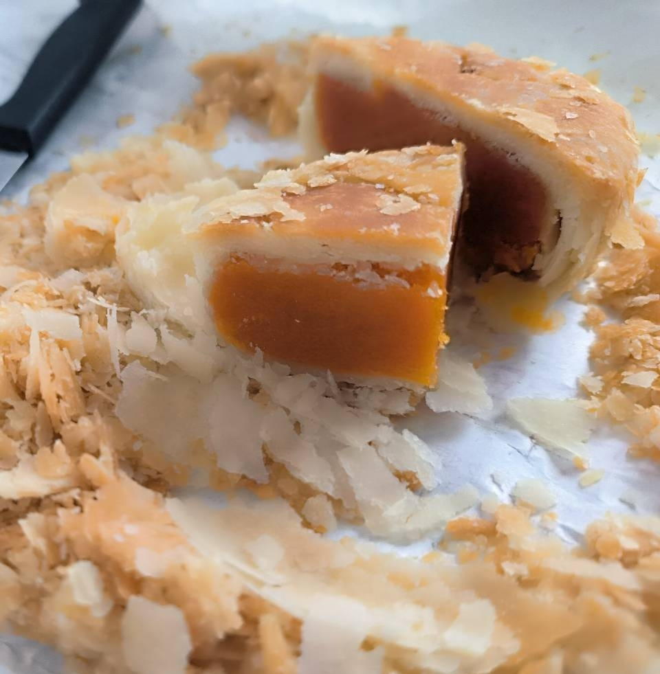 @楊:中团圆秋夜,刚切开的酥皮月饼,酥松外皮簌簌落下,内里金黄绵密的馅料色泽诱人。一口下去,香甜在舌尖化开,这就是专属于中秋的美味与团圆滋味呀。