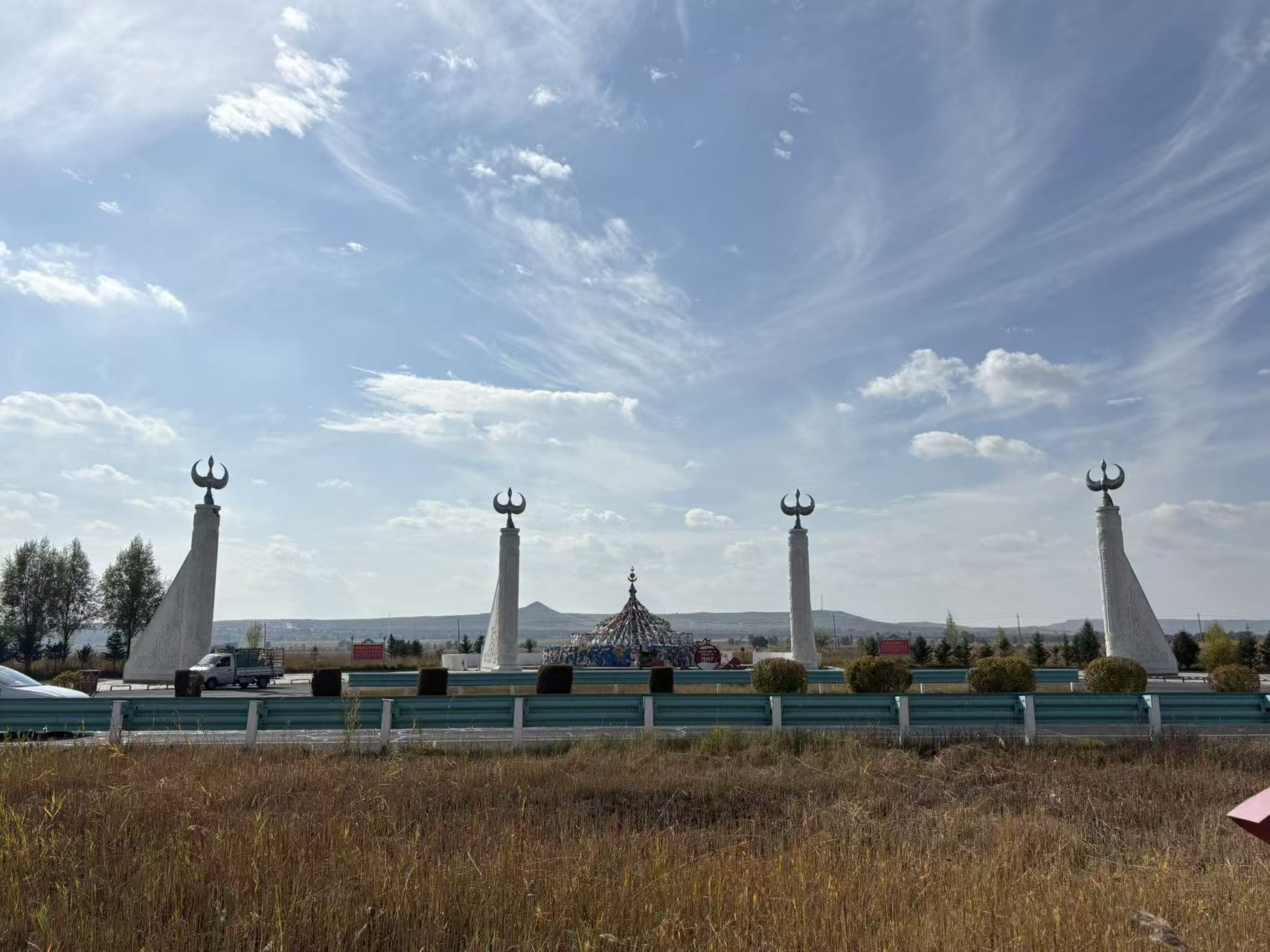 @��:在一个阳光灿烂的日子里,我们观赏了一组极具蒙古族文化特色的景观,草原民族祭祀天地、山神、路神等的场所“敖包”。敖包上挂满了五彩经幡,随风飘动,寓意着将祈福之意传向四方,在蓝天白云的映衬下格外醒目,四根精美的立柱对称分布,这里每一处建筑元素,都承载着蒙古族对自然的敬畏和独特的文化传承。
