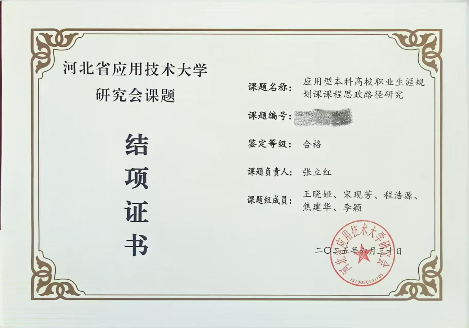 科研方面:张立红老师作为项目负责人,主持2项科研课题,包括河北省应用技术大学研究会课题和校级一般课题;同时参与2项课题研究,分别为河北省应用技术大学研究会课题和校级一般课题。在学术论文方面,她以第一作者身份发表论文4篇,以第二作者身份发表论文1篇,展现出扎实的科研能力与学术影响力。