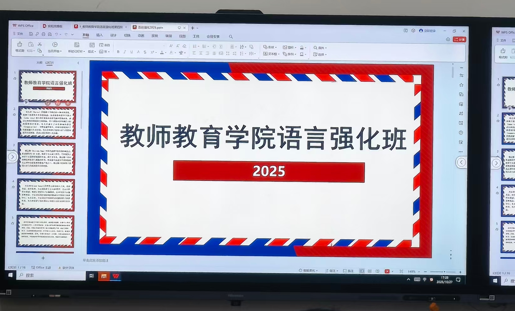 为夯实学生语言素养,提升未来教育教学核心能力,教师教育学院第四期语言强化班于2025年10月27日正式开课。来自学院各班级的学生齐聚一堂,共同开启了一场语言能力提升的成长之旅。