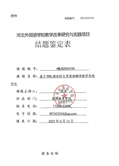 在科研创新方面,张浩老师带领由高园、魏鸿娟、万三、杨帛锟、万富铮、李浩、马鑫鑫等组成的“SPIRIT英语研学团”科研攻关小组,以赛促研、以研促教,积极开展教育创新实践。科研攻关小组立足教育专业与英语学科的交叉融合研究,紧密对接行业实际需求,在跨学科教学研究领域取得了丰硕成果。通过组织参与各类教学竞赛和科研活动,有效促进了团队成员的专业成长和学生的全面发展。