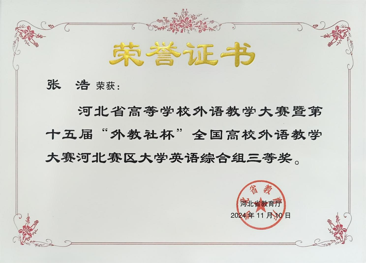 这一系列奖项不仅体现了张浩老师持续精进的教学水平,更彰显了其在教学创新方面的努力。