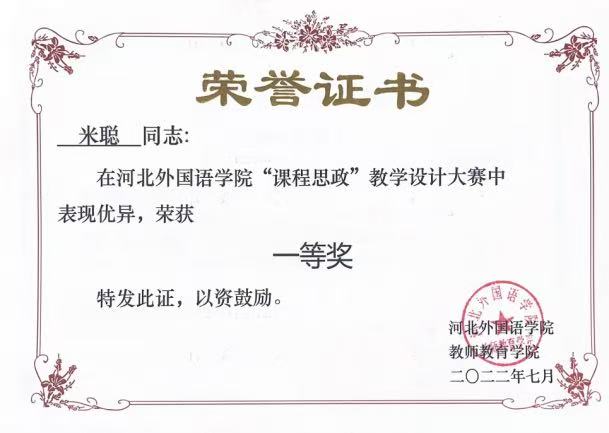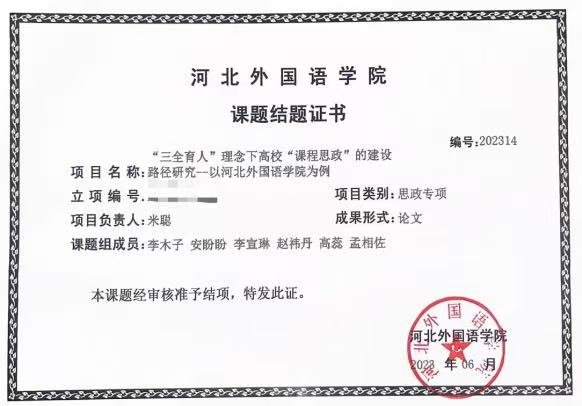 在课程建设方面:米聪老师立项校级一流课程1门,校级课程考核评价体系改革与研究项目1项并顺利结项、2门课程入选校级课程思政教学典型案例。