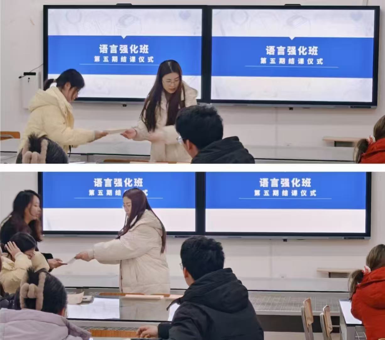 语言强化班是教师教育学院提升学生国际视野、语言素养与专业竞争力的重要举措。未来,学院将继续立足新时代教育发展需求,不断优化课程内容与教学形式,推出更多针对性强、实用性高的能力提升项目,助力学生成长为适应教育现代化要求的高素质专业化教师人才。希望同学们以此为新的起点,再接再厉,不断巩固和提升英语能力,在今后的学习和实践中取得更大进步。
