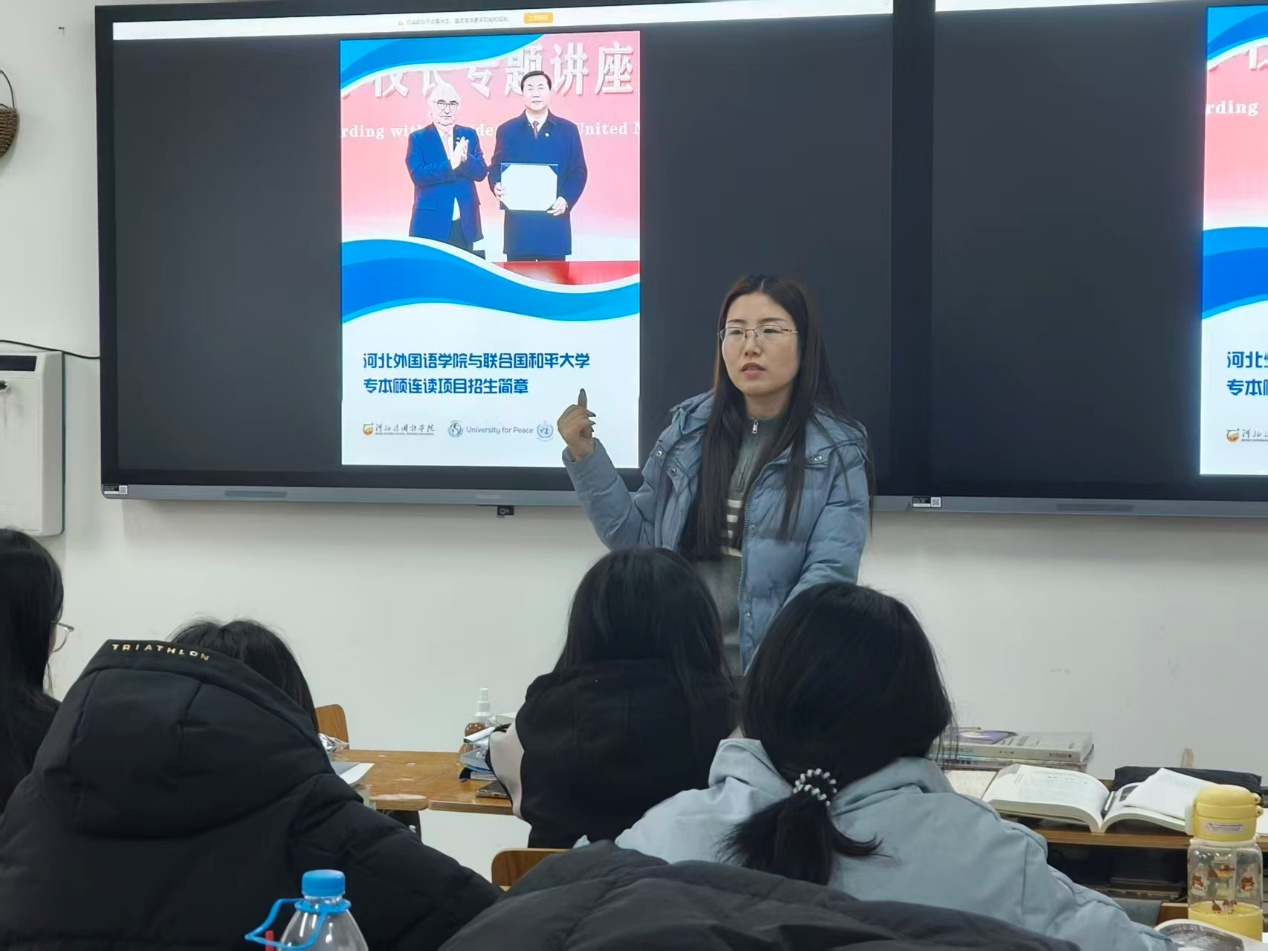 为切实将优质国际合作项目信息传递给每一位学子,精准匹配不同年级学生的学业规划需求,2025年12月,教师教育学院外事部开展联合国和平大学专本硕连读项目宣讲活动。活动面向全院学生,重点涵盖大三专本科及大四本科有升学意愿的群体,同时为大一、大二的学生提前规划学业路径提供参考